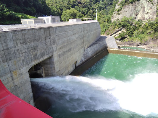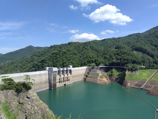 最終日は社会勉強で八ッ場ダム見学。八ッ場ダムは建設か中止か、もめていた30年以上前から通っていた、大好きな川原湯温泉にあります。少し油臭の温泉で共同浴場もいくつかあり、中でも日本一好きだった「笹湯」に何度来たことでしょう。その笹湯も温泉街も鉄道までもダムに沈みました。しかし、この夏は水量が最低近くまで下がり、かつてここに街があったことを示す跡が見えました。
